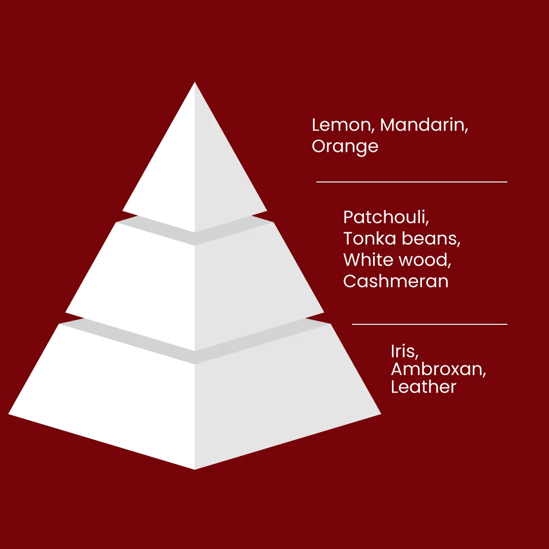 This fragrance opens with an explosion of fruits, featuring peach, bergamot, and orange. At its heart, patchouli, tonka bean, white woods, and cashmeran create a warm, woody blend. The base notes of iris, ambroxan, and leather add a touch of sophistication. It’s a perfume that evokes the image of a mysterious, enchanting forest, captivating the senses with its perfect balance of fruity freshness, woody warmth, and floral elegance.